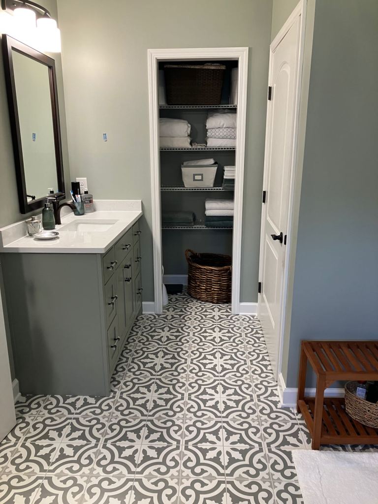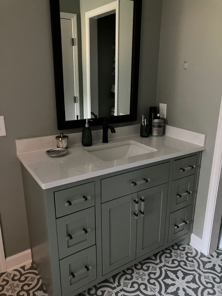 - Vanities – Sherwin Williams Emerald Trim Paint – Evergreen Fog Satin